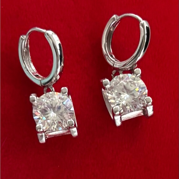 | Product Features | Gorgeous sparkle!Sterling silver huggie hoops with Moissanite drops. Beautiful tension style settings for maximum play of light!1ct each earring for a total of 2cts. New with GRA certificate Bundle multiple items for combined shipping fee! | ||